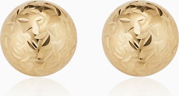 Celebrate while adding a touch of shine and sophistication to any outfit with these gorgeous diamond cut gold ball studs. Have more than one piercing? Perfect! Our ball studs pair well with friends.