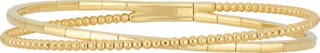 Beautiful bracelet and pairs well with many of my other gold bracelets. It's lightweight with a bit of flex to it so it's quite comfortable. I took away one star because the clasp can be quite difficult to open. I appreciate that it's secure but struggle a bit to get it on and off. Still recommend and I love the look and feel of it. I wear it paired with the Bony Levy crossover ring and love the two pieces together.