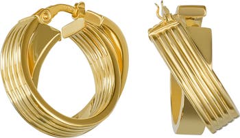Smooth and textured links cross paths on these handcrafted hoop earrings set in 14-karat gold that create a warm, welcoming shine.