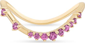 Graduated round pink sapphires trace fluid lines of a curved-band ring crafted from warm 14-karat yellow gold.