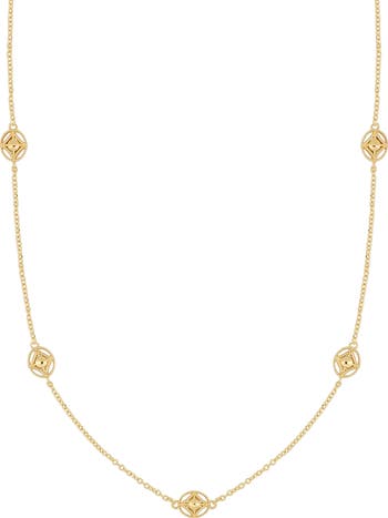 Part of our online trunk show, this style is available for a limited time From July 12 through August 3. Cutout stations with milgrain trim lend intricate texture and detail to this delicate chain necklace handcrafted in Italy from 14-karat gold.