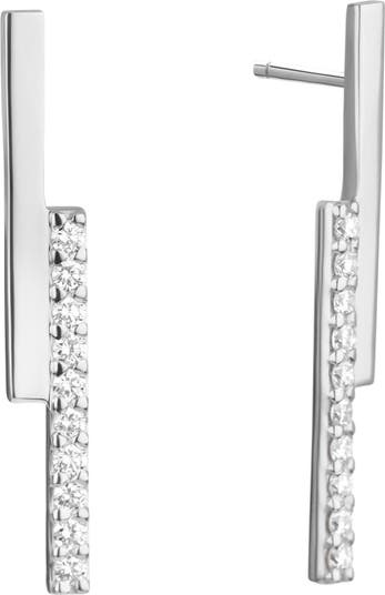 A slim diamond-adorned bar paired with its smooth twin brings modern edge to these subtly stunning linear earrings rendered from 14-karat white gold.