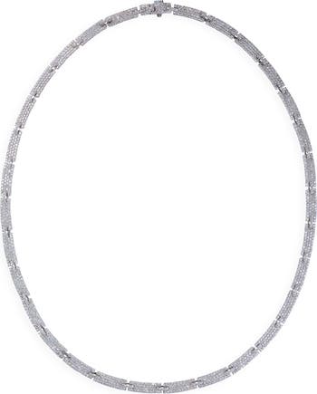 Diamond-doused tags create grandiose sparkle on this icy 14-karat gold necklace that remixes the timeless tennis style.