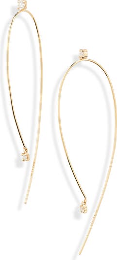 Slender loops of 14-karat white gold refine these thread-through hoop earrings punctuated with dainty diamonds.
