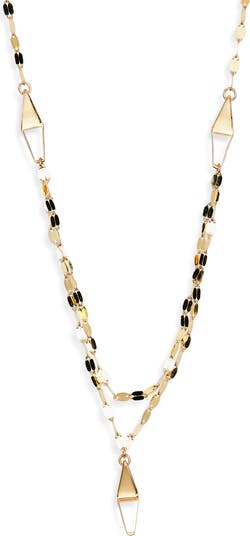 Dual strands of coupled flat links layer in this 14-karat gold necklace finished with a 3D kite pendant for added allure.