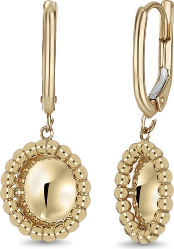 Bask in the warm glow of these 14‑karat gold earrings, where two beaded disc drops shimmer like twin suns.