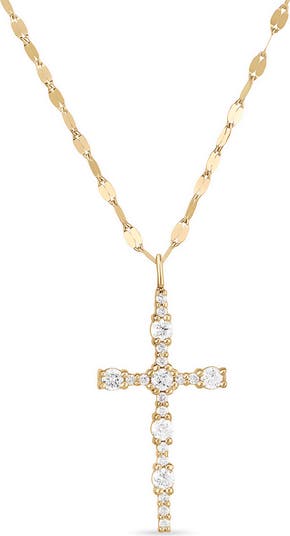 Let your light shine with this diamond-coated cross pendant strung on a signature 14-karat gold chain of flat, coupled links.