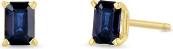 Shapely color defines these petite stud earrings crafted from 14-karat gold and prong-set with faceted sapphire.