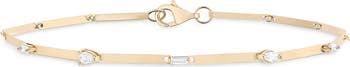 Slender curved 14-karat-gold links are joined by diamonds cut in a variety of faceted shapes for a simple, stunning station bracelet.