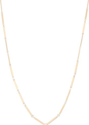 Slender curved 14-karat-gold links are joined by diamonds cut in a variety of faceted shapes for a simple, stunning station necklace.