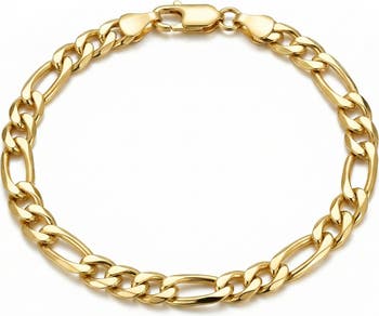 Dress up your look with this link bracelet. The bracelet features 14K gold-filled metal that's both durable and elegant, and the Figaro link design provides added beauty. Made with a secure lobster clasp, the bracelet also has a high-polished texture that adds a brilliant finish. Link style Gold filled metal High polish finish Figaro chain Lobster claw clasp 4.2 mm wide x 8.5 inches long