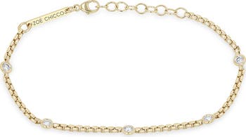 14K Gold Floating Diamond Small Box Chain Station Bracelet