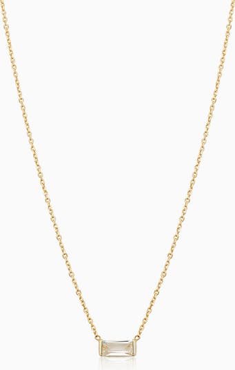 Our Fresco Baguette Pendant Necklace is the pop of sophistication you need this season! Inspired by the vibrant colors of Italian murals, it features a floating white topaz stone enrobed in 14k solid gold. Whether you wear it at the 17" mark as a necklace or at the 15" mark as a choker, it's sure to let your inner artist shine!
