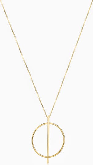 Like an abstract sculpture you’d find at an art show, our Gallery Pendant Necklace deserve to be on display. Solid gold bars pierce oversized open circles to create a uniquely refined look that makes an elegant statement.