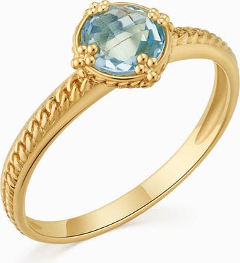 Our Antica Ring is a nod to timeless elegance, featuring a bezel set genuine amethyst or blue topaz stone encased in 14k gold. This exquisite pair boasts ornate details, showcasing the fine Italian craftsmanship of a bygone era. Perfect for adding a touch of vintage sophistication.