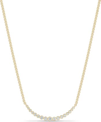 A curved pendant showcases diamonds in graduated bezels at the the center of this 14-karat-gold necklace. A polished box chain finishes the piece with refinement.
