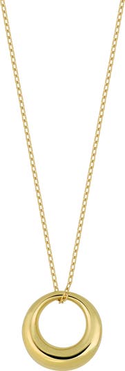 Lovely in its simplicity, a graduated circle pendant glows on a delicate chain necklace handcrafted from 14-karat gold.