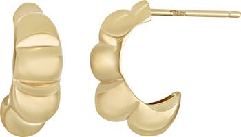 A scalled silhouette rendered in 14-karat gold give shapes and shine to these handcrafted hoop earrings.