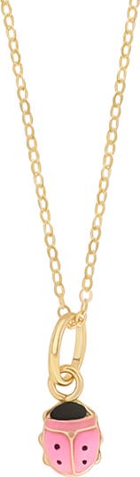 A rosy ladybug pendant brings playful whimsy to a handcrafted 14-karat-gold necklace.