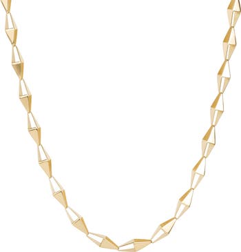 Polished geometric links create stunning dimension on this kite-chain necklace crafted from 14-karat gold.