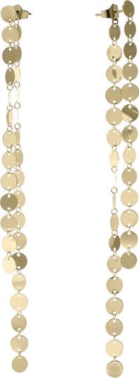 Glinting discs of 14-karat gold flow from the front and back of your lobes in these drop earrings that move with you. Designed to be worn multiple ways: as the intended front/back look, just the front with a standard backing, the back paired with your own stud or even doubled up in one ear. Mix, match and make it yours.