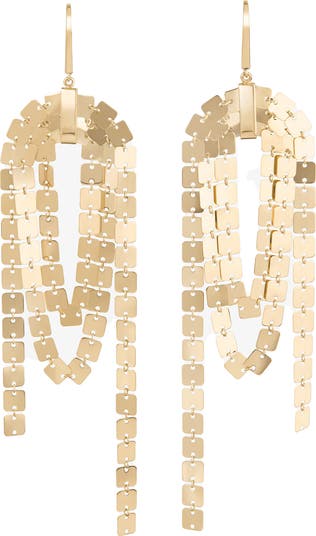 Cascading flat discs gleam like dappled sunshine on these swingy drop earrings crafted from 14-karat gold.