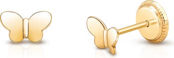 A symbol of hope, these 14k gold butterfly earrings are hypoallergenic, gentle on sensitive ears, and secure with flat-back screws for all-day wear.