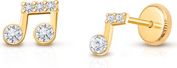 Made for the girl who loves to sing and dance, these 14K gold earrings with CZs shine as bright as she does. A perfect gift for your little music lover.