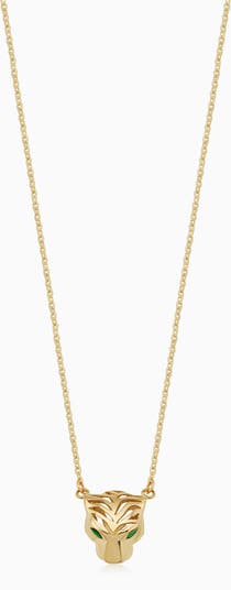 Masterfully crafted to embody the elegance and mystique of the majestic panther, this pendant features detailed etchings to mimic the sleek fur, complemented by striking emerald-hued gemstones for the eyes, set in polished gold. This exquisite necklace, perfect for adding a touch of playfulness and luxury to any outfit, showcases exceptional craftsmanship in every detail.