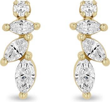 This 14-karat-gold studs feature gorgeously cascading lines of circular and marquise-cut diamonds.