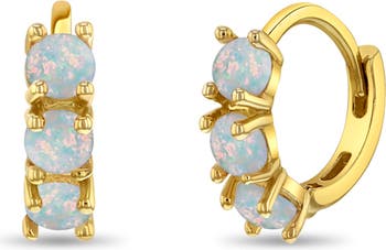 Enhance your little one's charm with these dainty hoop earrings crafted from 14k yellow gold, designed specifically for girls with sensitive skin. Measuring a delicate 7mm inner diameter, these earrings boast a timeless elegance. Adorning the front are three prong-set simulated opal stones, adding a touch of sparkle to any ensemble. For everyday wear or special occasions, these earrings effortlessly blend style and comfort, making them an ideal addition to any young girls jewelry collection. Gift box included with purchase.
