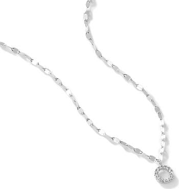 Twinkling diamonds illuminate the open circle pendant anchoring this 14-karat gold chain of sculpted flat links.
