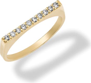 Pavé diamonds create a bold line of rich sparkle on this geometrically shaped ring made of 14-karat gold.