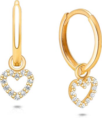14K Gold Pavé Heart Drop Classic 11mm Huggie Hoop Earrings