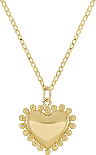 This 14-karat-gold necklace is handcrafted with a polished heart and a glinting frame of beads.