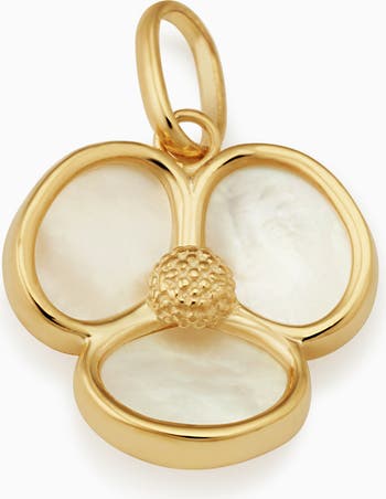Wear our Petals of Pearl Pendant Charm as a constant reminder of nature's beauty. The gorgeous shape of a flower's petals, the opalescent glow of mother of pearl and the high shine of solid gold all come together in this special piece.