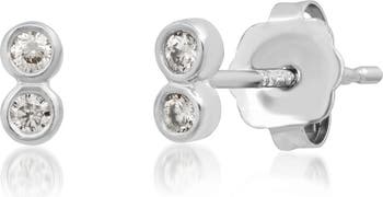 14K Gold Petite Double Bezel Diamond Stud Earrings