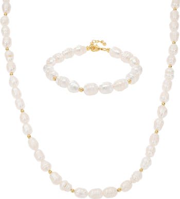 14k Gold Plated Eternal Spring Cultured Pearl Necklace & Bracelet Set