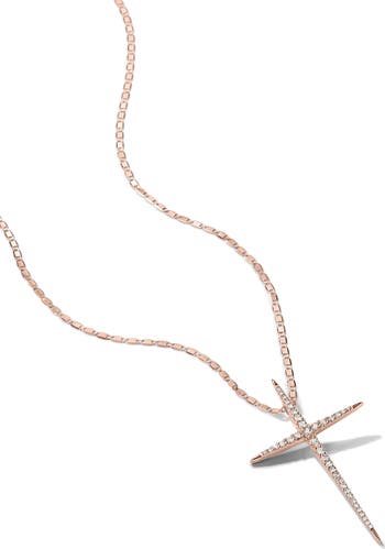 Pointed edges sharpen the silhouette of the cross pendant at the center of this diamond-detailed necklace.