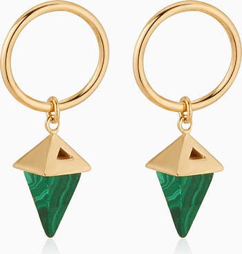 Elevate your style with our Prism Point Drop Earrings. Crafted from 14k solid gold, this pair features a unique look, with pointed gemstone accents in genuine black onyx or malachite With their modern design and timeless elegance, they're perfect for any occasion, adding a chic statement to your look.