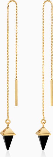 Elevate your style with our Prism Threaders. Crafted from 14k solid gold, these lightweight earrings feature sleek chains with pointed gemstone accents in black onyx or pearl. Their modern design and timeless elegance make them perfect for any occasion, adding a chic statement to your look.