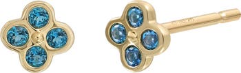 Tiny stud earrings handcrafted from 14-karat gold pack a punch of muted color thanks to a cluster of bezel-set semiprecious stones.