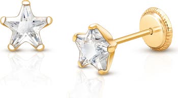 These dazzling star-cut CZ studs in 14K gold are hypoallergenic and comfy. She’ll feel like a star. Arrives gift wrapped in Tiny Blessings signature style.