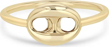A puffy silhouette brings a sculptural glint to the mariner link at the center of this 14-karat-gold ring.