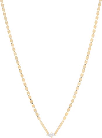 Flat, light reflecting links of 14-karat gold lead to a single marquise-shaped diamond at the focal point of this delicate chain necklace.
