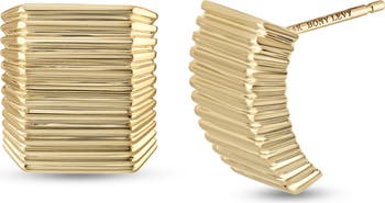 Light bounces off the ridged surface of these elegantly curved stud earrings handcrafted from gleaming 14-karat gold.