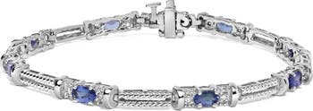 Indulge in the ethereal beauty of this 14K white gold bracelet, radiating timeless elegance with a modern twist. Enhanced by rhodium plating for an exquisite luster, thick links mimic the luxurious feel of a cord, each encircling a mesmerizing oval-shaped tanzanite. These natural gems, treasured for their unique blue-purple hues, have been color-treated to accentuate their vivid depth, creating an enchanting play of light with every movement. Interspersed among these stones lie sparkling diamonds of H-I color and SI1-SI2 clarity, adding a whisper of glamour. Measuring 7 inches, it clings gracefully with a secure box clasp and safety latch, promising not just comfort but style that befits your most cherished moments. Make this opulent accessory a testament to your sophisticated aesthetic.