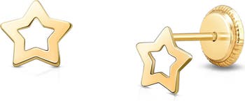 14K Gold Wish Upon a Star Studs Screw Back Earrings
