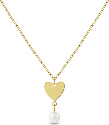 Elegant and timeless, this girls' necklace features a polished heart pendant crafted in luminous 14k yellow gold. Gently suspended from the bottom of the heart is a 4mm freshwater cultured pearl, adding a delicate touch of grace. The necklace measures 15 inches in length with an additional 1-inch extender for added comfort and a lovely fit as she grows. A beautiful piece that’s great for special occasions or everyday sparkle. Gift box included with purchase.