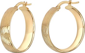 A carved finish gives light-catching texture to handcrafted hoop earrings.